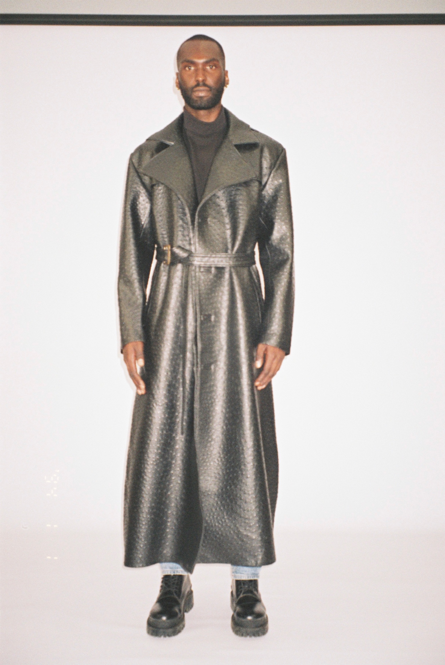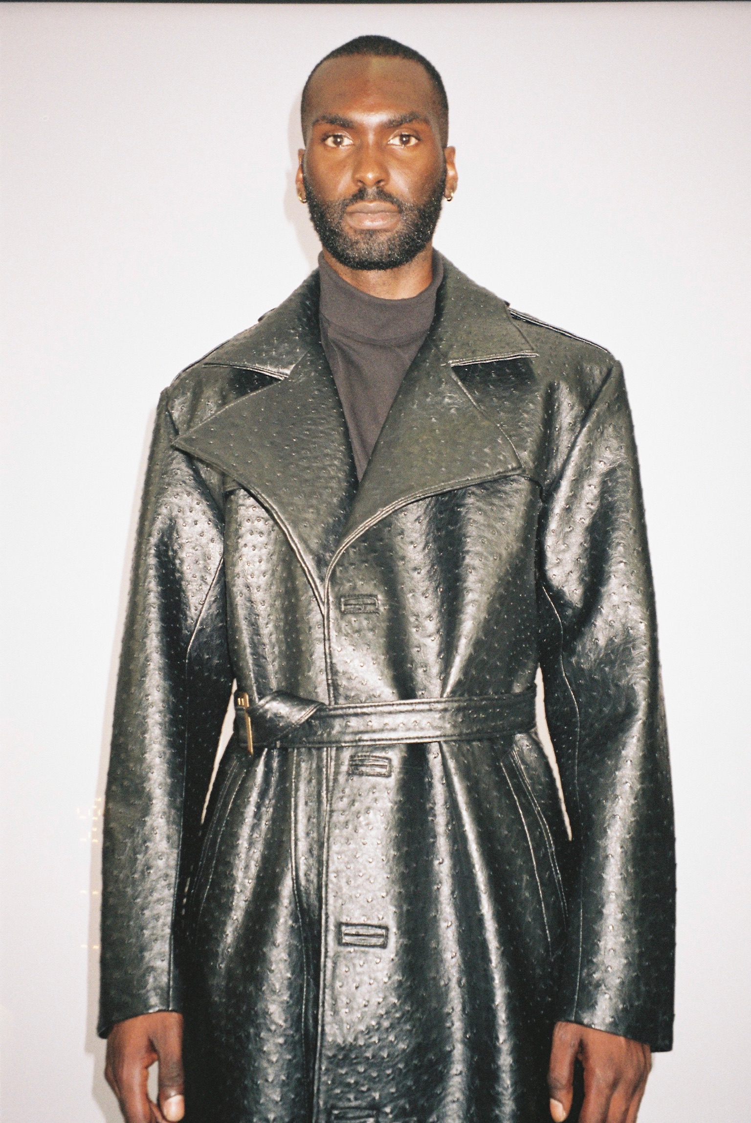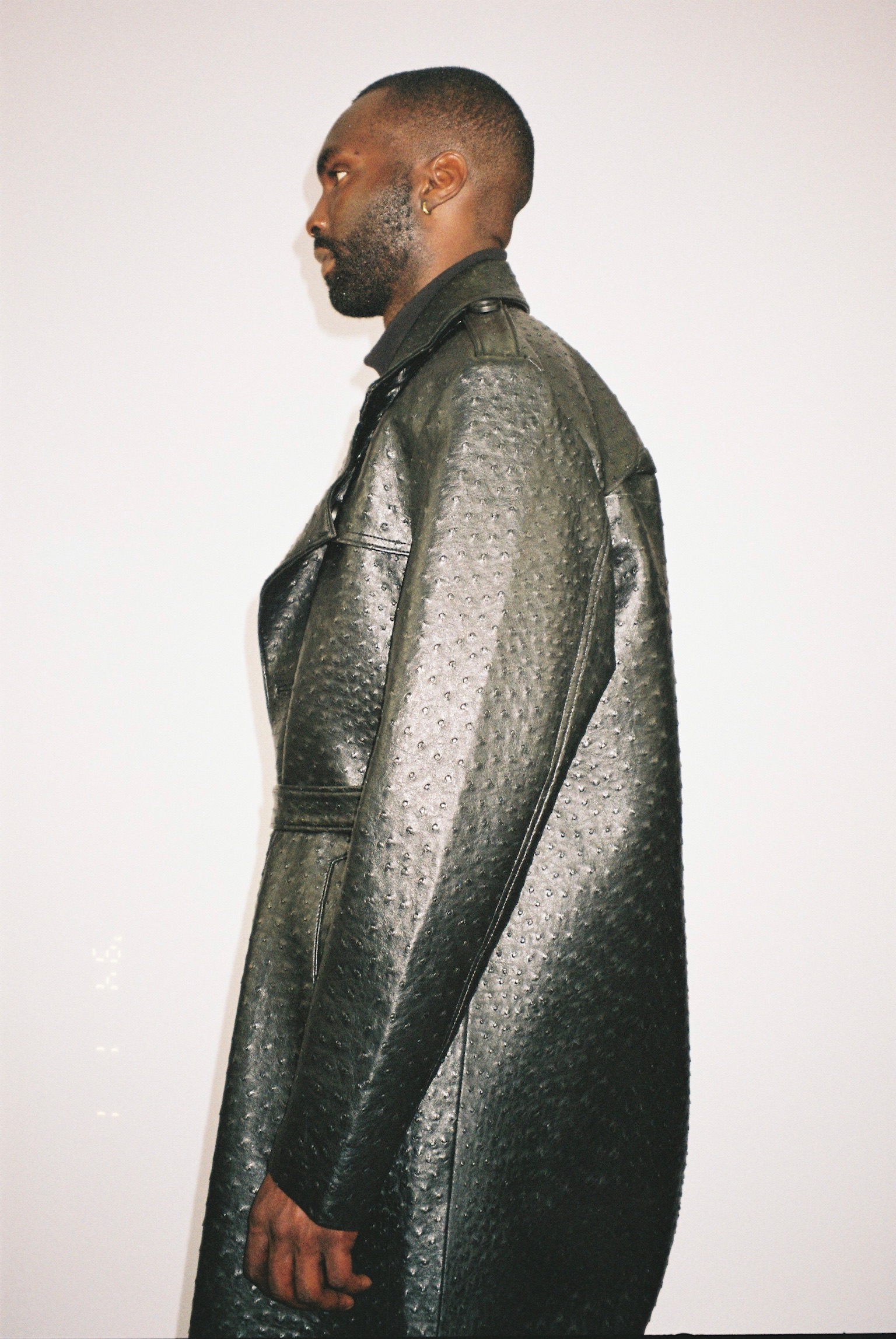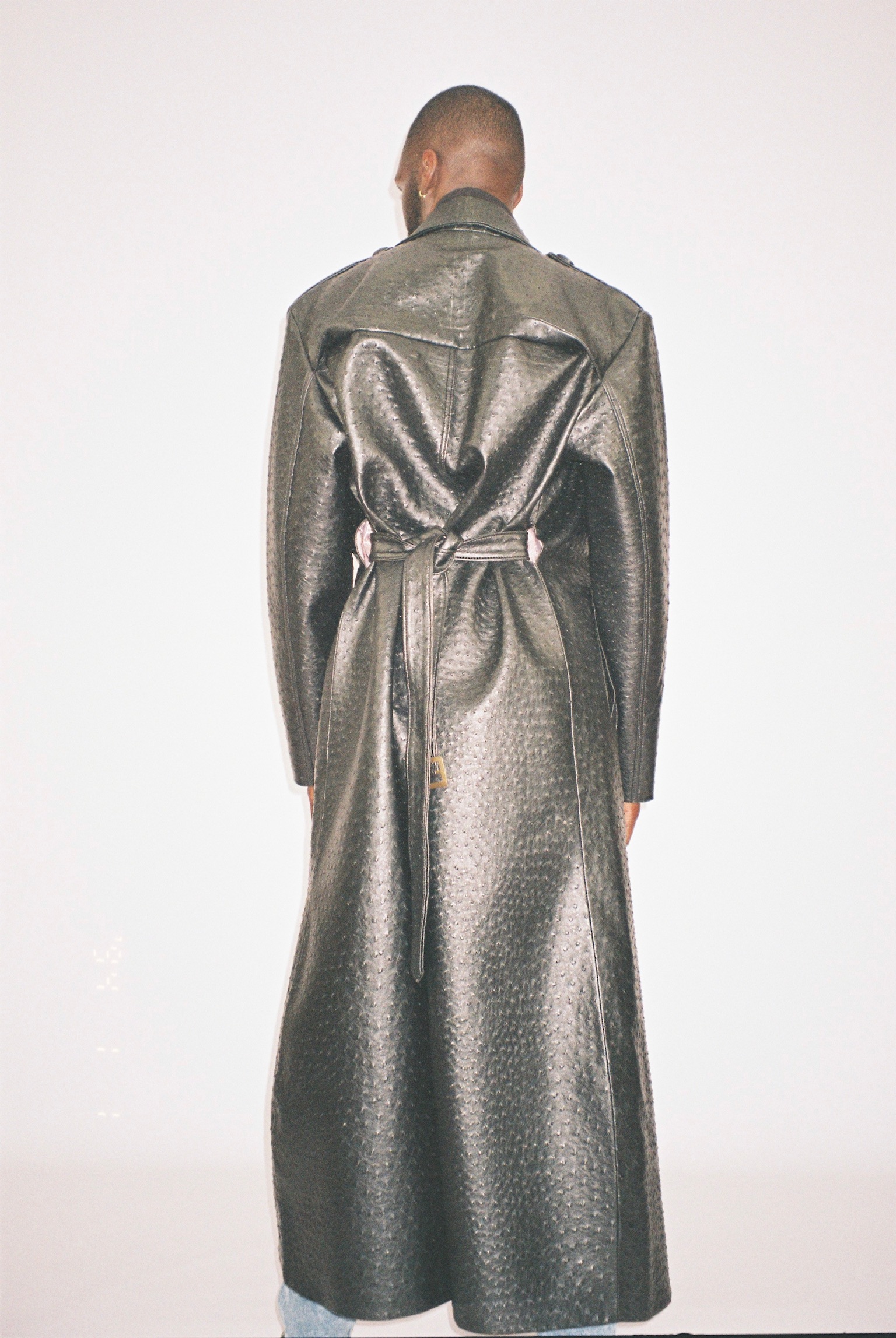 OSTRICH EFFECT FAUX LEATHER TRENCH COAT